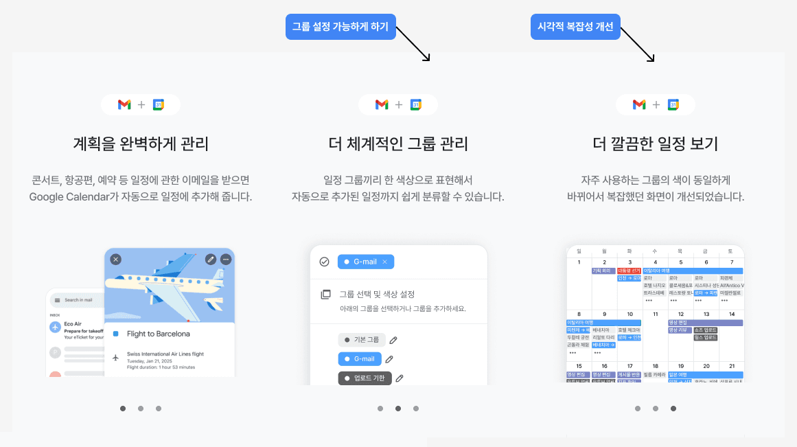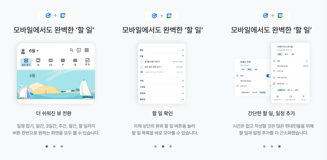 캘린더 시장은 계속 확장되고 있다. 그리고 Google Calendar(구글 캘린더)는 사용 편의성, 다른 구글 서비스와의 연동성, 강력한 기능으로 잘 알려진 다용도 일정 관리 도구다. 개인 및 업무용으로 일정을 관리하거나 회의를 계획하고 작업을 추적하는 데 자주 사용된다. 사용 중인 모든 캘린더를 Google Calendar에서 확인할 수 있어 업무에서 개인 생활에 이르는 모든 일정을 관리할 수 있다. VOC 모으기도 해봤는데 자잘한 오류 수정 요청, 음력 캘린더 제공 요청, 위젯에 대한 불만이 대부분이었다. 그나마 일정의 칼라박스는 특별한 날에만 칠하고 싶다는 의견이 있어 참고했다.