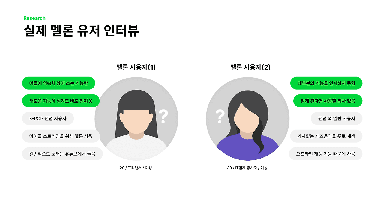 실제 멜론 사용자들을 대상으로 인터뷰를 진행했다.